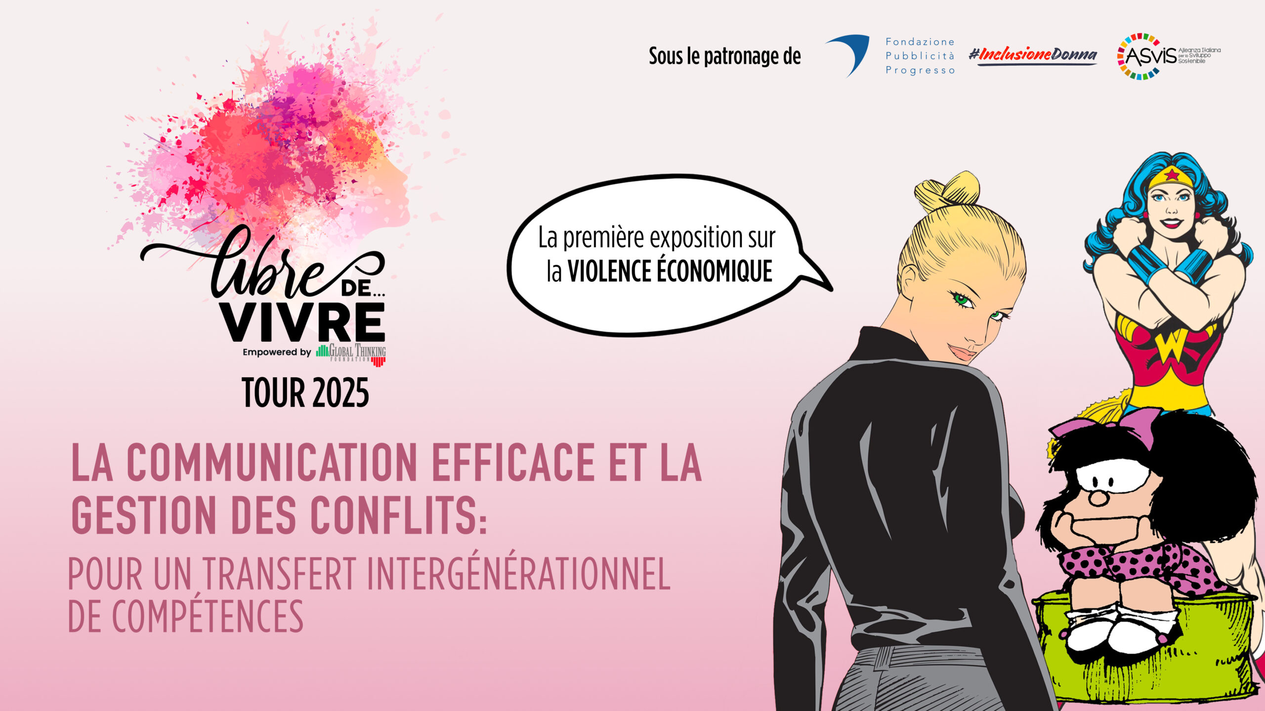 Femmes, Droits, et Reprise pour une pleine inclusion sociale: voici les thèmes de l’exposition itinérante Libre de…VIVRE. Il s’agit d’un Projet articulé par Global Thinking Foundation dont le but est de favoriser une plus grande conscience et ainsi agir activement sur la prévention des situations de violence économique tout en luttant contre l’isolement social des Femmes.